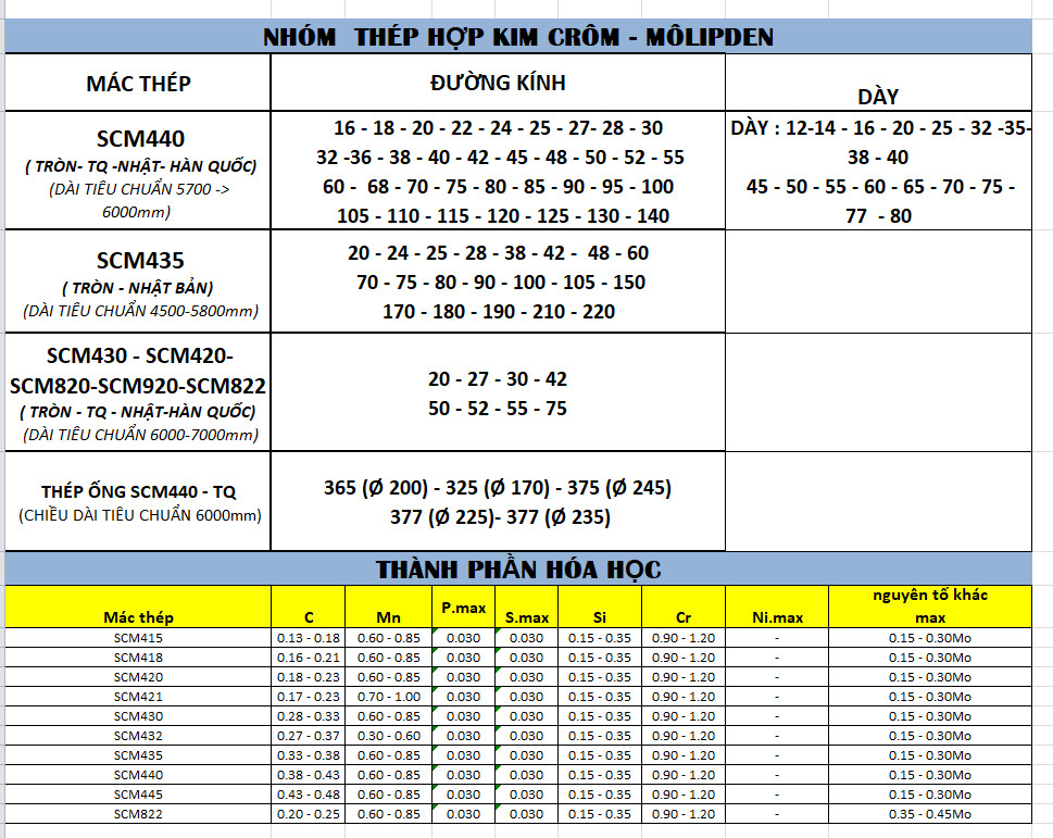 Hãy chọn thép ống đúc hợp kim SCM440 – SCR440 – SCR440 – SCR420 tại Kim Quốc Anh ngay nhé. Nếu bạn cần thêm bất cứ thông tin gì về các chủng loại thép, liên hệ qua số 0283.7505.735 – 0903.735.826 – 0819.735.826.